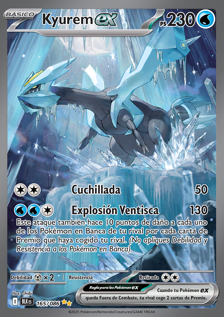 Explosión Ventisca Este ataque también hace 10 puntos de daño a cada uno de los Pokémon en Banca de tu rival por cada carta de Premio que haya cogido tu rival. (No apliques Debilidad y Resistencia a los Pokémon en Banca). |