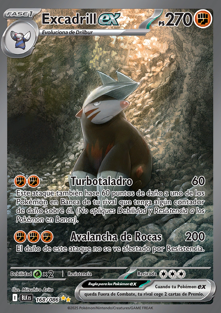 Turbotaladro Este ataque también hace 60 puntos de daño a uno de los Pokémon en Banca de tu rival que tenga algún contador de daño sobre él. (No apliques Debilidad ni Resistencia a los Pokémon en Banca). |