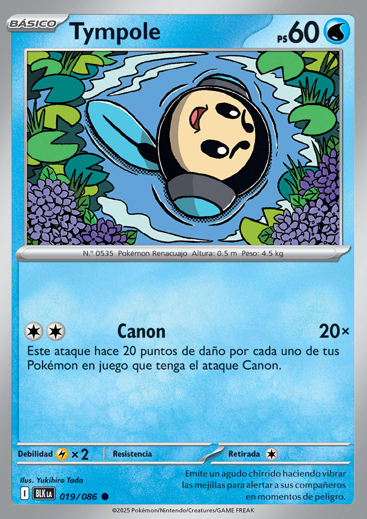 Canon Este ataque hace 20 puntos de daño por cada uno de tus Pokémon en juego que tenga el ataque Canon. |