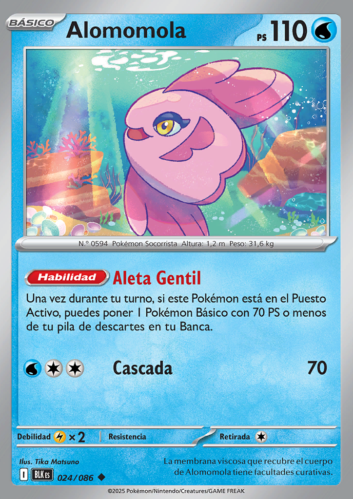 | Una vez durante tu turno, si este Pokémon está en el Puesto Activo, puedes poner 1 Pokémon Básico con 70 PS o menos de tu pila de descartes en tu Banca. | |