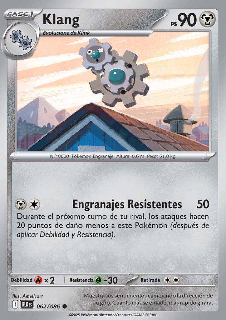 Engranajes Resistentes Durante el próximo turno de tu rival, los ataques hacen 20 puntos de daño menos a este Pokémon (después de aplicar Debilidad y Resistencia). |