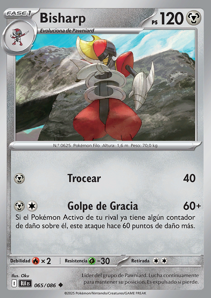 Golpe de Gracia Si el Pokémon Activo de tu rival ya tiene algún contador de daño sobre él, este ataque hace 60 puntos de daño más. |