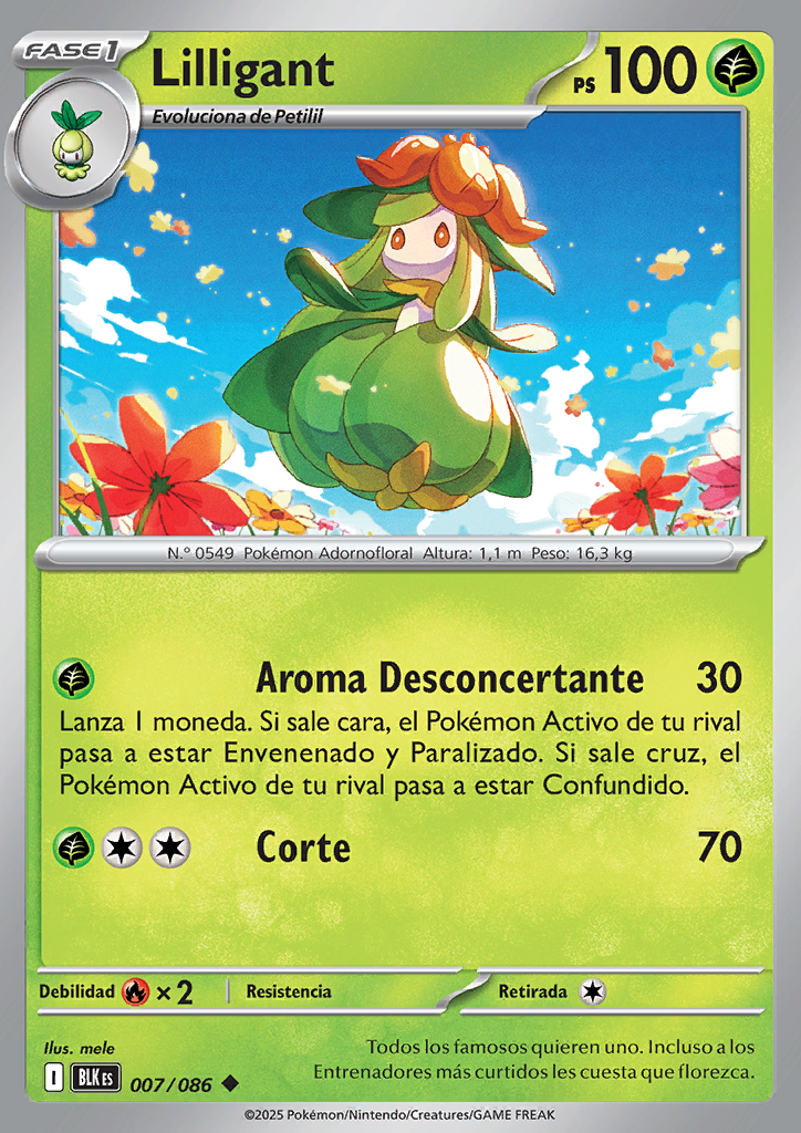 Aroma Desconcertante Lanza 1 moneda. Si sale cara, el Pokémon Activo de tu rival pasa a estar Envenenado y Paralizado. Si sale cruz, el Pokémon Activo de tu rival pasa a estar Confundido. |