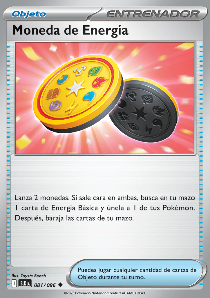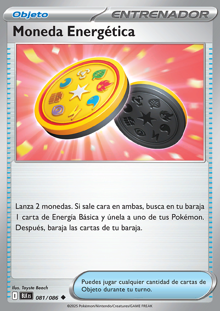 | Lanza 2 monedas. Si sale cara en ambas, busca en tu baraja 1 carta de Energía Básica y únela a uno de tus Pokémon. Después, baraja las cartas de tu baraja. |