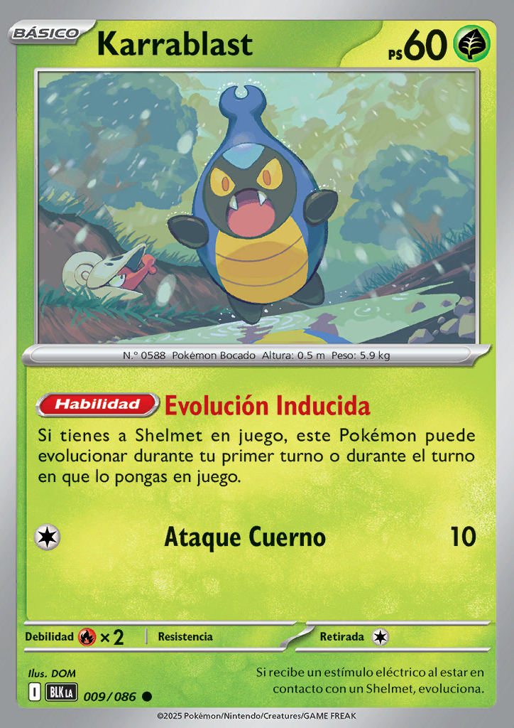 | Si tienes a Shelmet en juego, este Pokémon puede evolucionar durante tu primer turno o durante el turno en que lo pongas en juego. | |