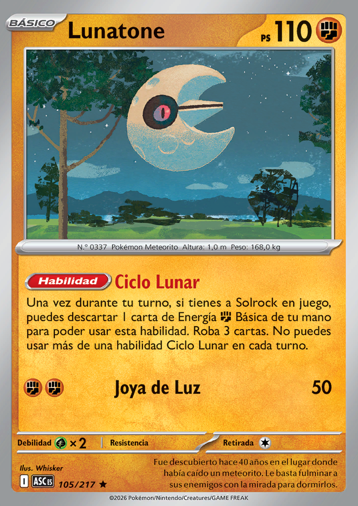 Una vez durante tu turno, si tienes a Solrock en juego, puedes descartar 1 carta de Energía |