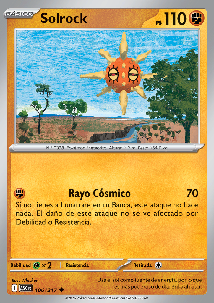 Rayo Cósmico Si no tienes a Lunatone en tu Banca, este ataque no hace nada. El daño de este ataque no se ve afectado por Debilidad o Resistencia. |