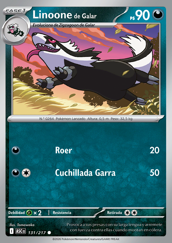 Evoluciona de Zigzagoon de Galar. |
