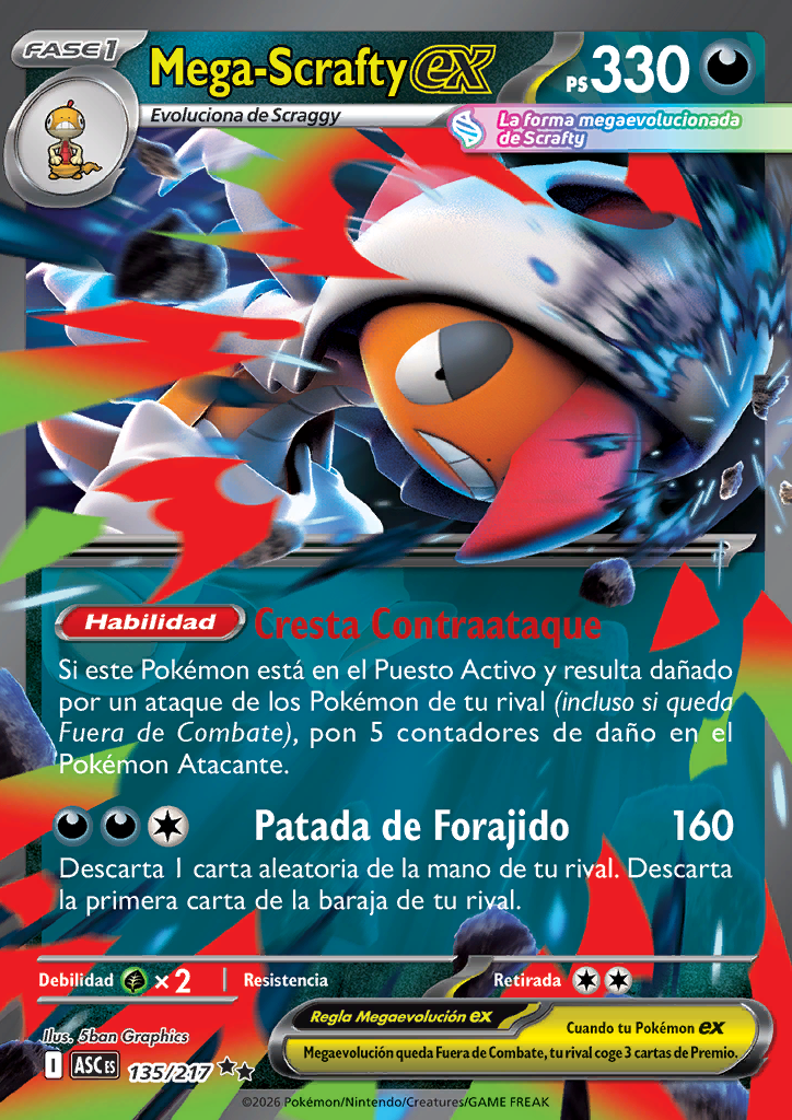 Cuando tu Pokémon ex Megaevolución queda Fuera de Combate, tu rival coge 3 cartas de Premio. |