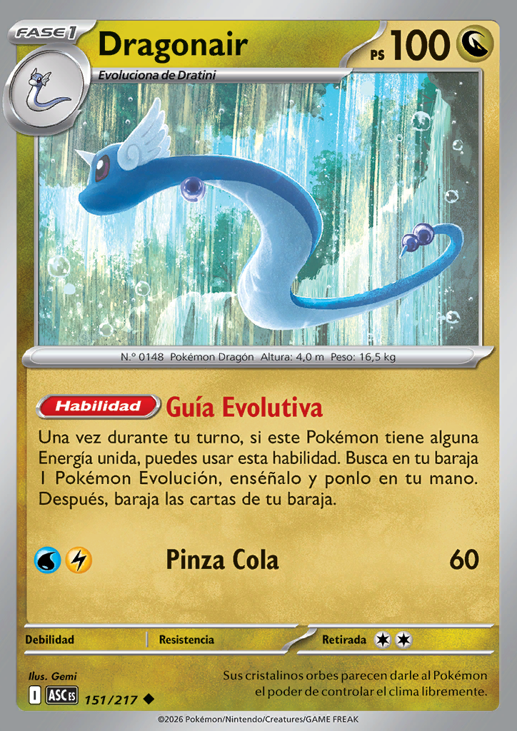 | Una vez durante tu turno, si este Pokémon tiene alguna Energía unida, puedes usar esta habilidad. Busca en tu baraja 1 Pokémon Evolución, enséñalo y ponlo en tu mano. Después, baraja las cartas de tu baraja. | |