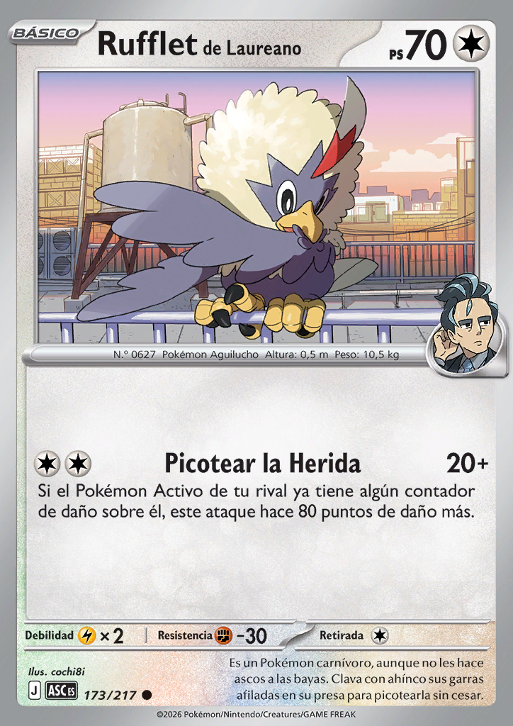 Picotear la Herida Si el Pokémon Activo de tu rival ya tiene algún contador de daño sobre él, este ataque hace 80 puntos de daño más. |