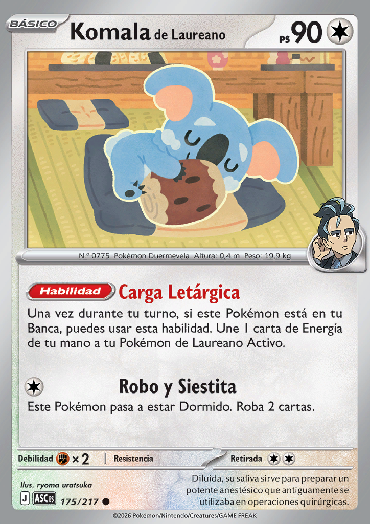 | Una vez durante tu turno, si este Pokémon está en tu Banca, puedes usar esta habilidad. Une 1 carta de Energía de tu mano a tu Pokémon de Laureano Activo. | |