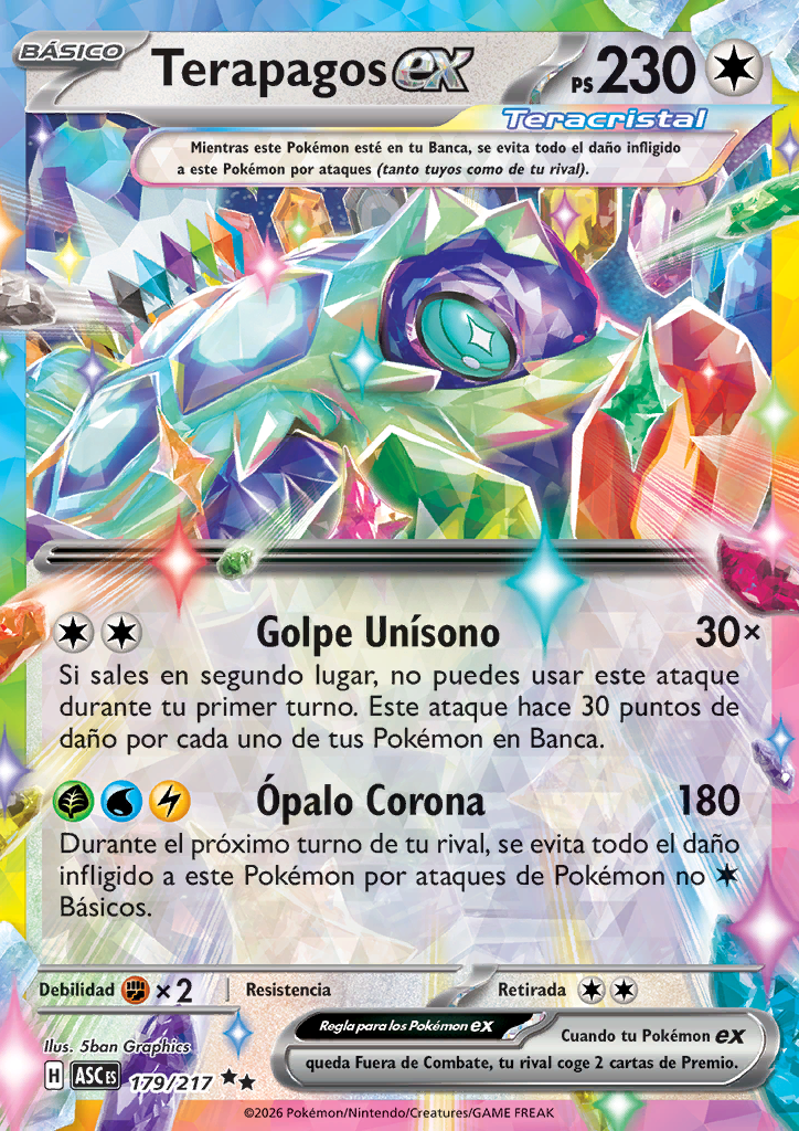 Opalo Corona Durante el próximo turno de tu rival, se evita todo el daño infligido a este Pokémon por ataques de Pokémon no Básicos. |