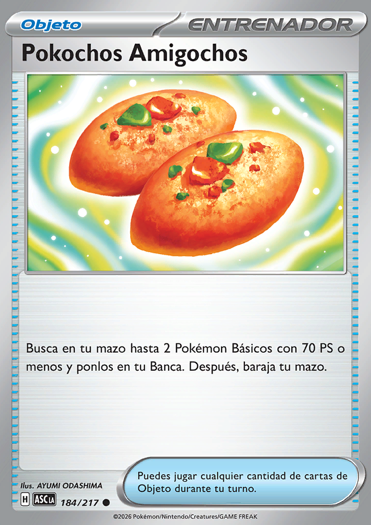 | Busca en tu baraja hasta 2 Pokémon Básicos con 70 PS o menos y ponlos en tu Banca. Después, baraja las cartas de tu baraja. |