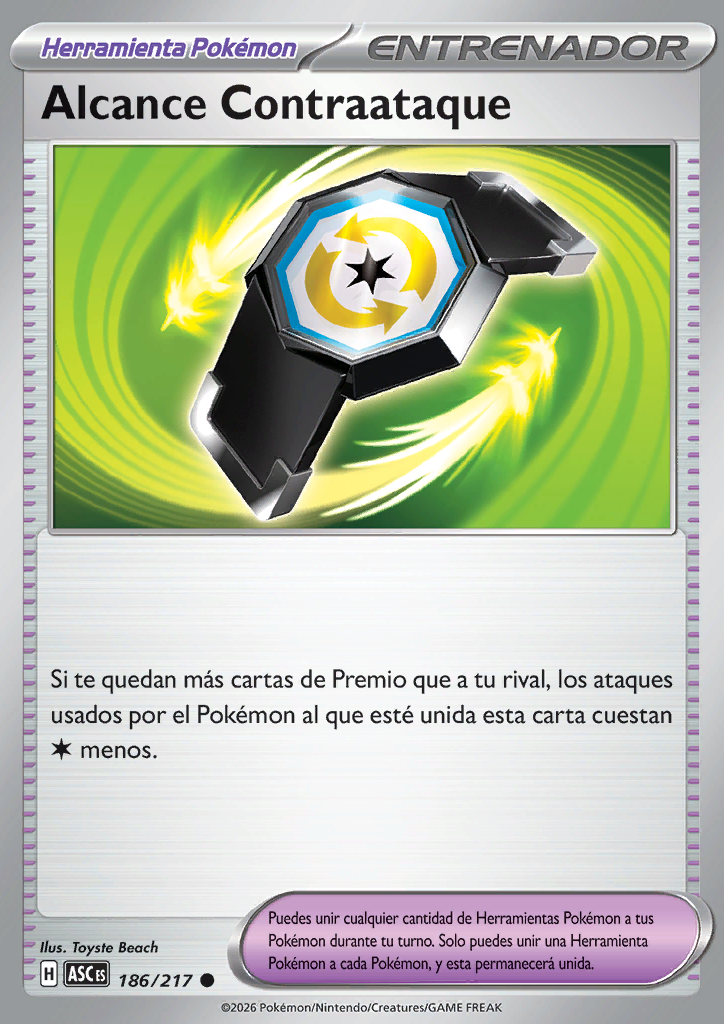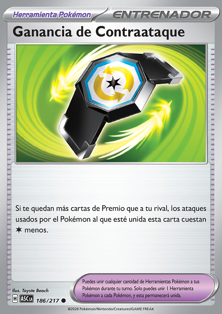 | Si te quedan más cartas de Premio que a tu rival, los ataques usados por el Pokémon al que esté unida esta carta cuestan menos. |