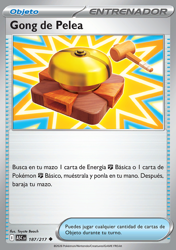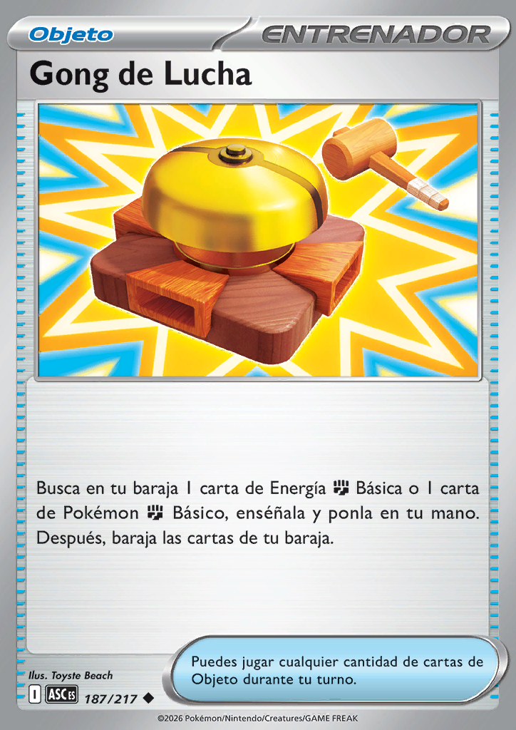 | Busca en tu baraja 1 carta de Energía Básica o 1 carta de Pokémon Básico, enséñala y ponla en tu mano. Después, baraja las cartas de tu baraja. |