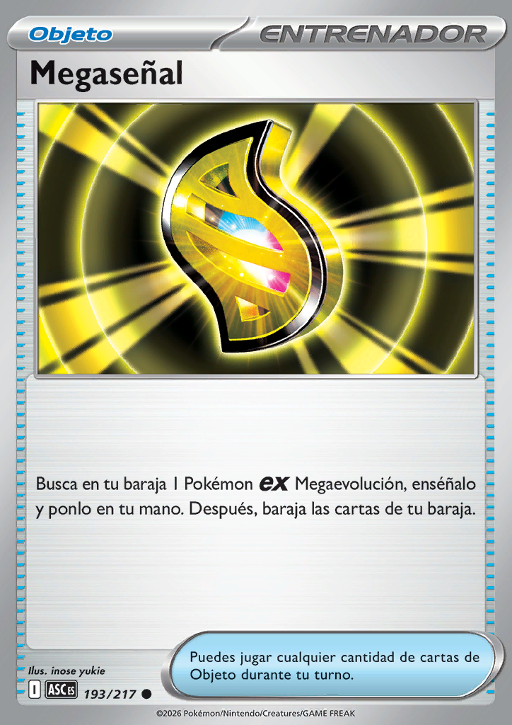 | Busca en tu baraja 1 Pokémon ex Megaevolución, enséñalo y ponlo en tu mano. Después, baraja las cartas de tu baraja. |