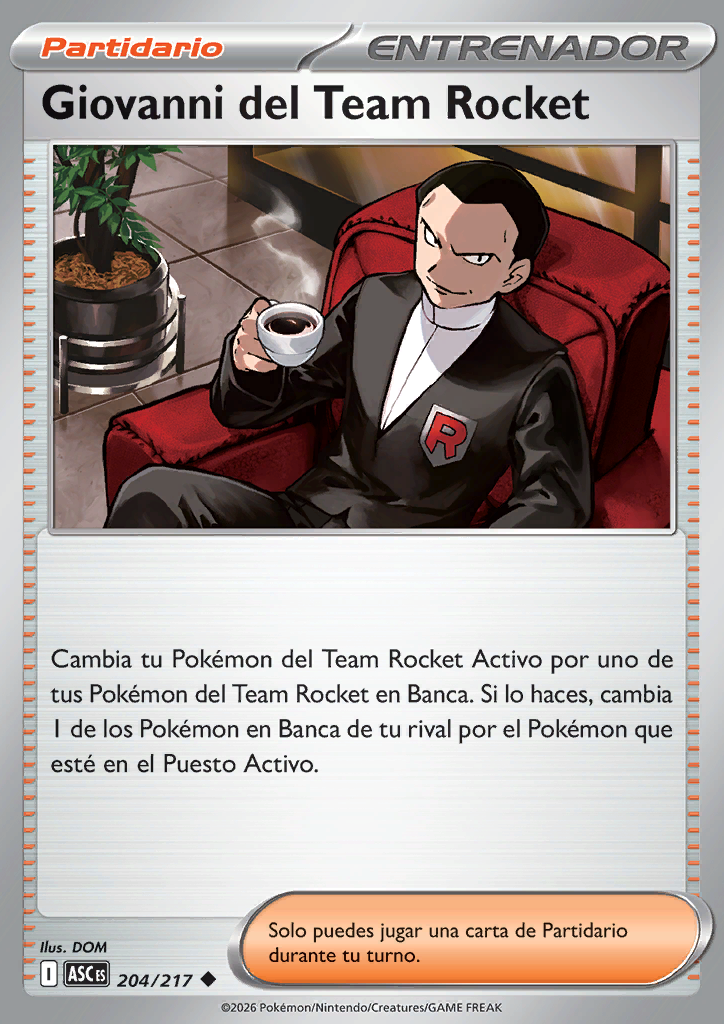 | Cambia tu Pokémon del Team Rocket Activo por uno de tus Pokémon del Team Rocket en Banca. Si lo haces, cambia 1 de los Pokémon en Banca de tu rival por el Pokémon que esté en el Puesto Activo. |