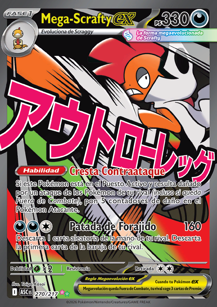 | Si este Pokémon está en el Puesto Activo y resulta dañado por un ataque de los Pokémon de tu rival (incluso si queda Fuera de Combate), pon 5 contadores de daño en el Pokémon Atacante. | |