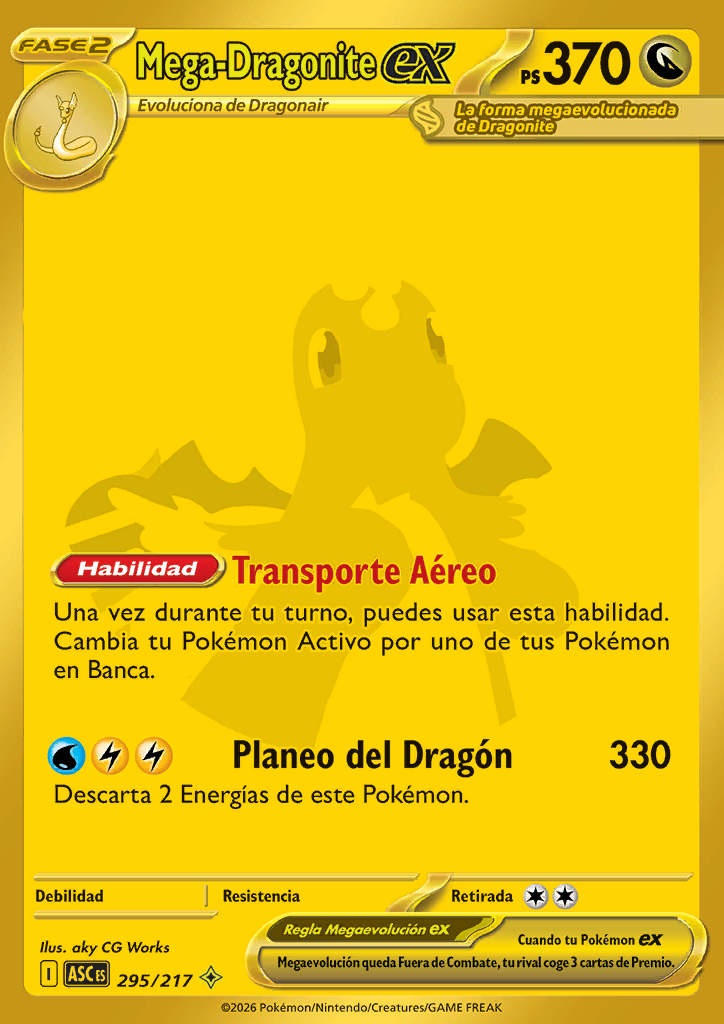 Cuando tu Pokémon ex Megaevolución queda Fuera de Combate, tu rival coge 3 cartas de Premio. |