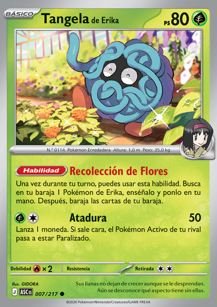 | Una vez durante tu turno, puedes usar esta habilidad. Busca en tu baraja 1 Pokémon de Erika, enséñalo y ponlo en tu mano. Después, baraja las cartas de tu baraja. | |