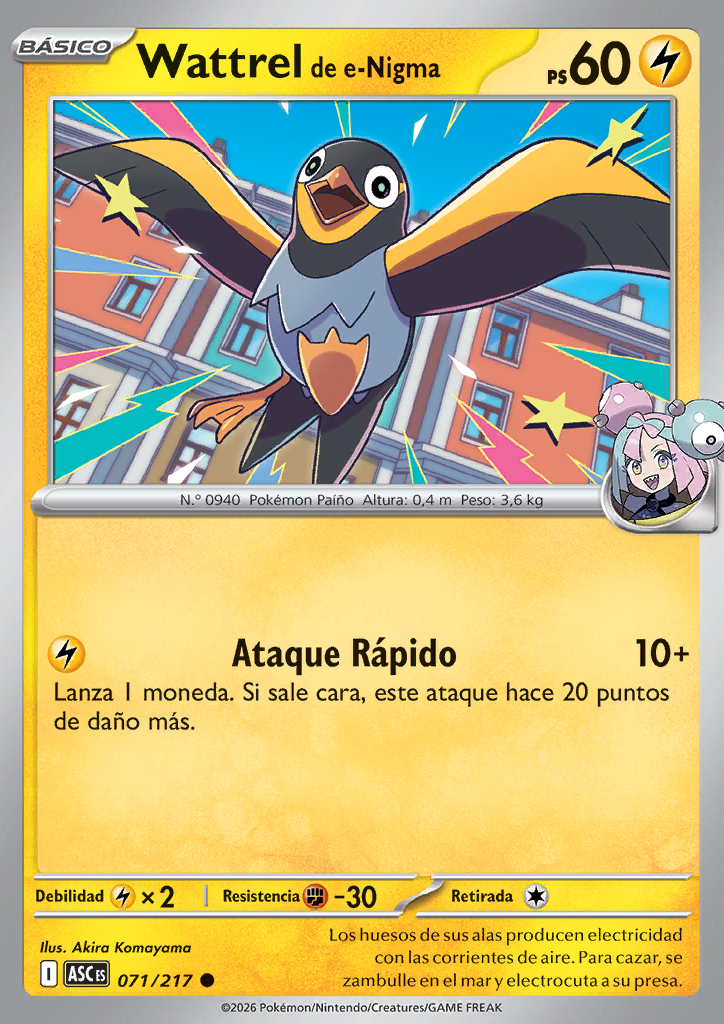 Ataque Rápido Lanza 1 moneda. Si sale cara, este ataque hace 20 puntos de daño más. |