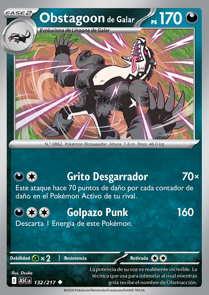 Grito Cicatriz Este ataque hace 70 puntos de daño por cada contador de daño en el Pokémon Activo de tu rival. |