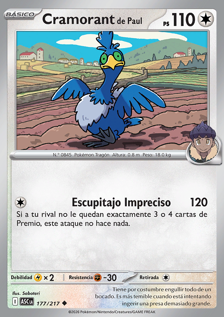 Escupitajo Impredecible Si a tu rival no le quedan exactamente 3 o 4 cartas de Premio, este ataque no hace nada. |