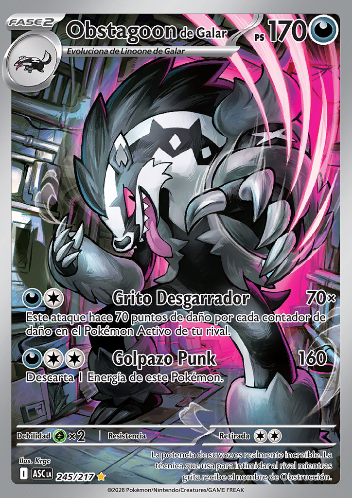 Grito Cicatriz Este ataque hace 70 puntos de daño por cada contador de daño en el Pokémon Activo de tu rival. |