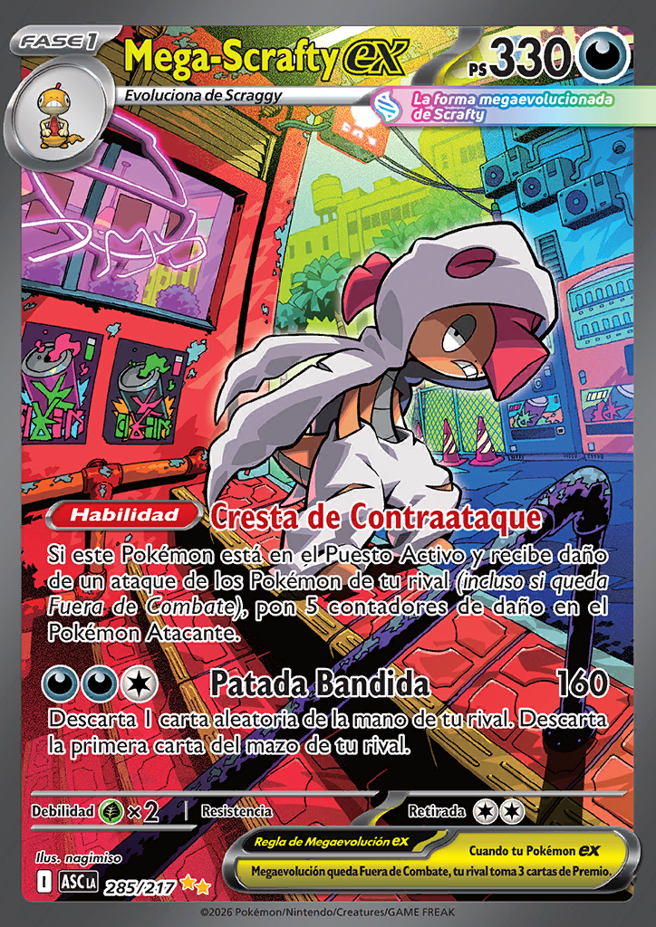 | Si este Pokémon está en el Puesto Activo y resulta dañado por un ataque de los Pokémon de tu rival (incluso si queda Fuera de Combate), pon 5 contadores de daño en el Pokémon Atacante. | |
