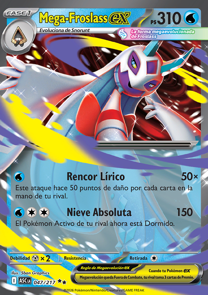 Cuando tu Pokémon ex Megaevolución queda Fuera de Combate, tu rival coge 3 cartas de Premio. |