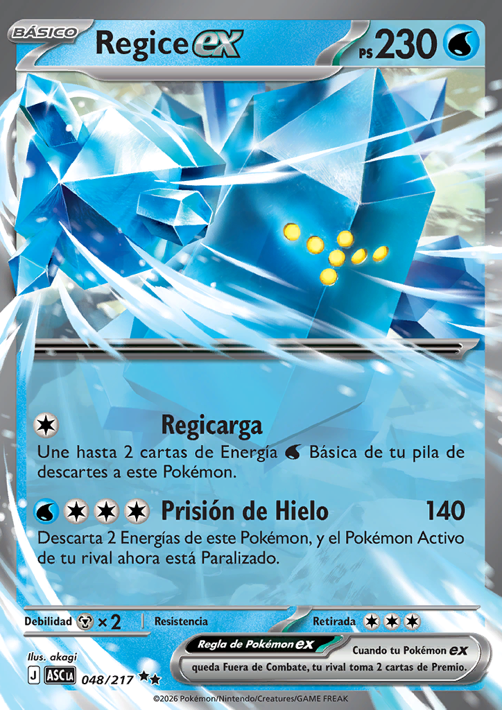 Prisión de Hielo Descarta 2 Energías de este Pokémon, y el Pokémon Activa de tu rival pasa a estar Paralizado. |