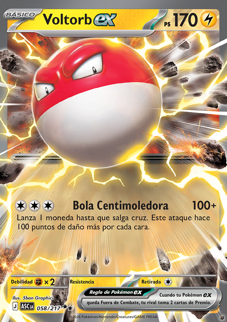 Cuando tu Pokémon ex queda Fuera de Combate, tu rival coge 2 cartas de Premio. |