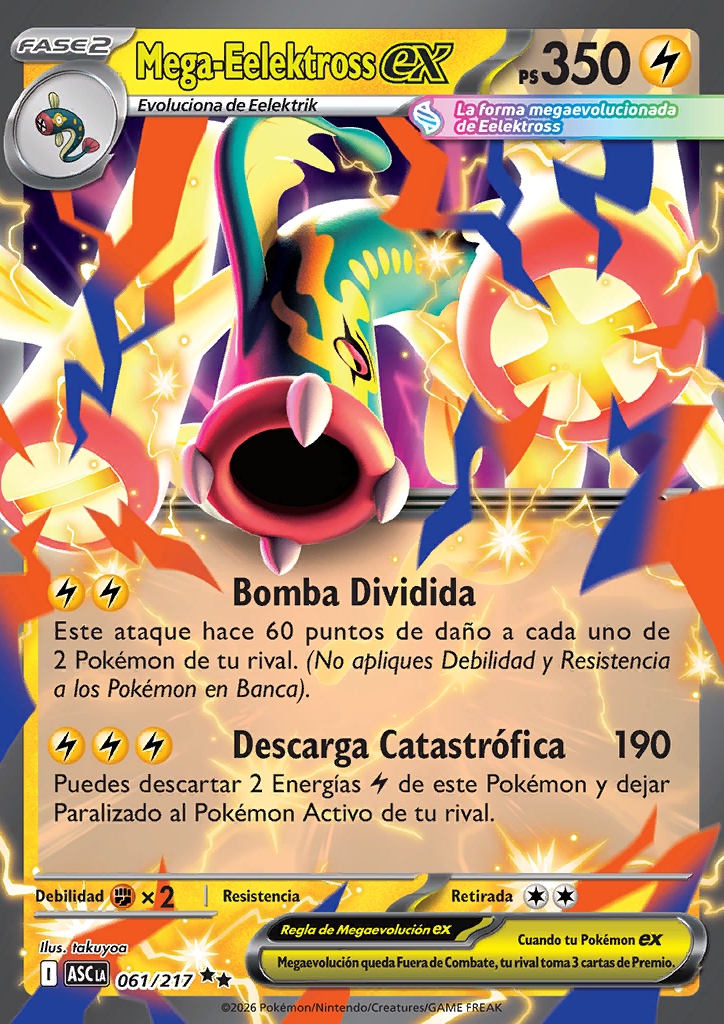 Cuando tu Pokémon ex Megaevolución queda Fuera de Combate, tu rival coge 3 cartas de Premio. |
