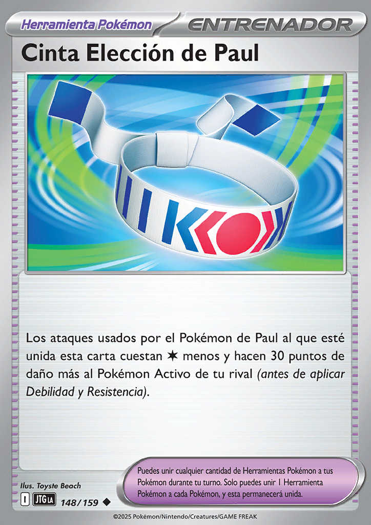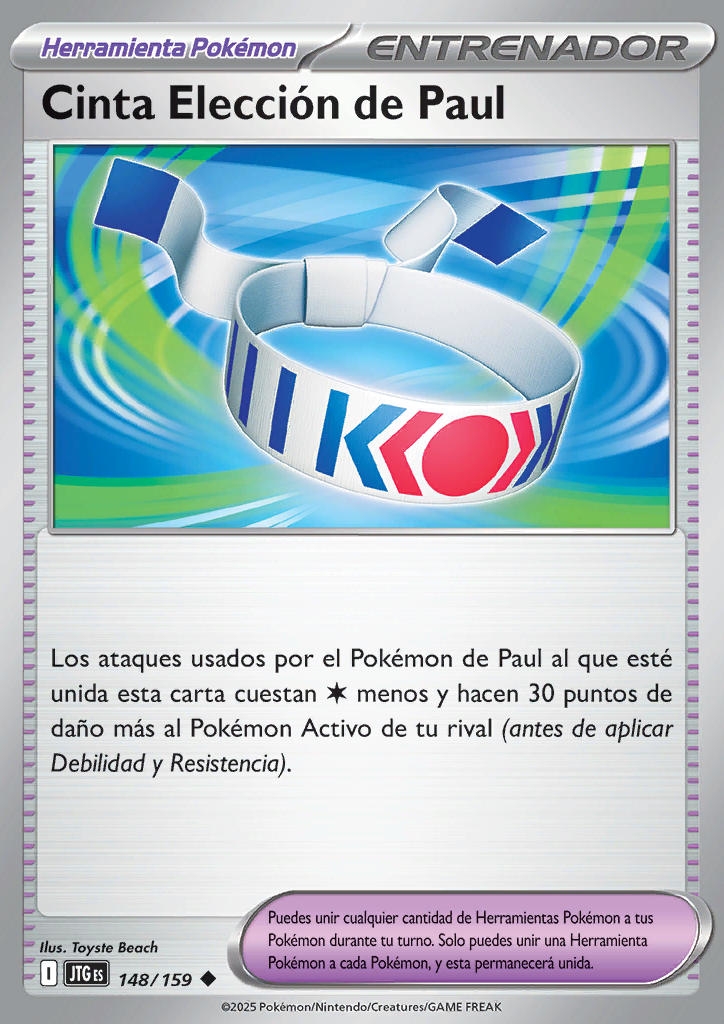 | Los ataques usados por el Pokémon de Paul al que esté unida esta carta cuestan menos y hacen 30 puntos de daño más al Pokémon Activo de tu rival (antes de aplicar Debilidad y Resistencia). |