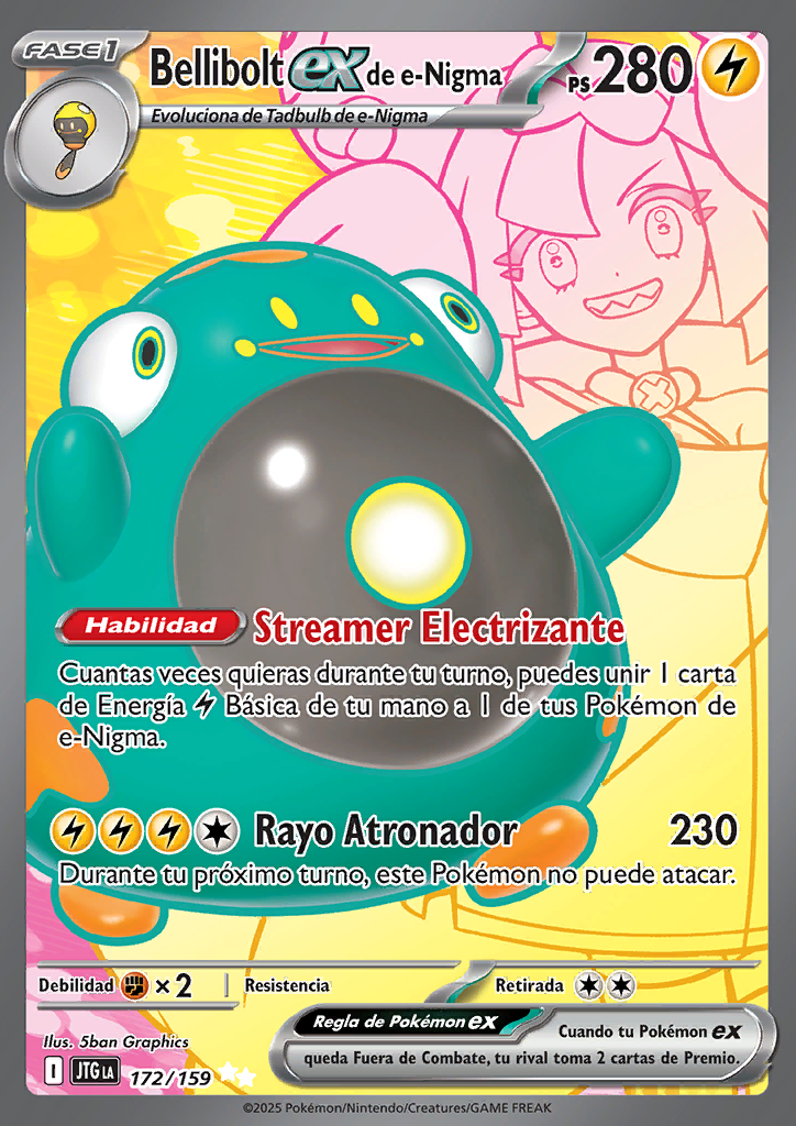 | Todas las veces que quieras durante tu turno, puedes unir 1 carta de Energía Básica de tu mano a uno de tus Pokémon de e-Nigma. | |