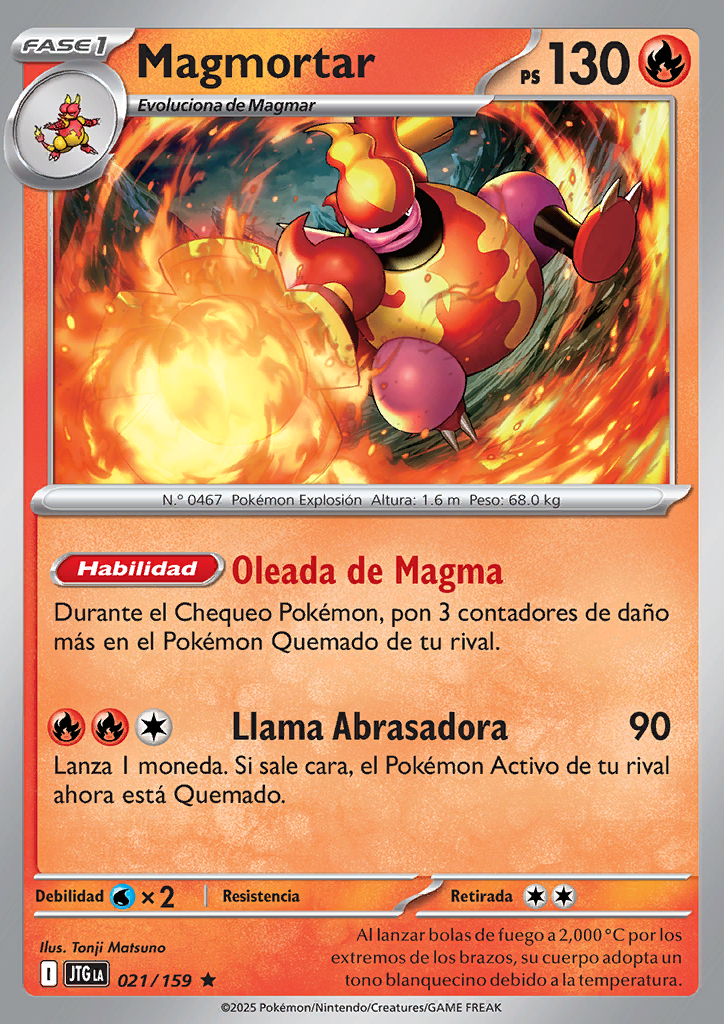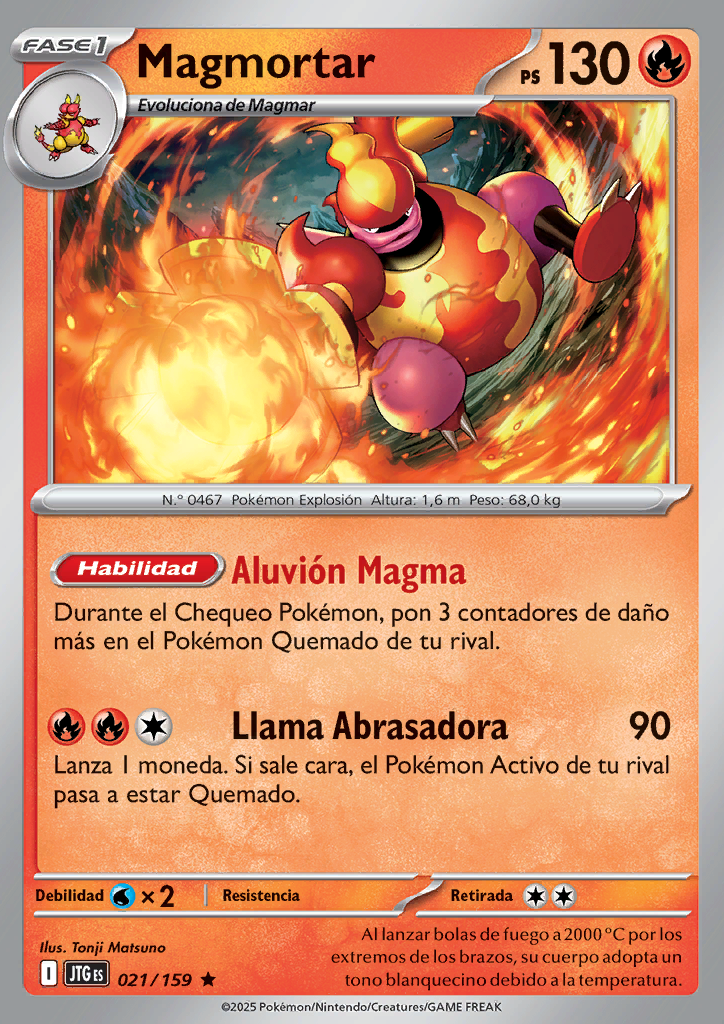 Llama Abrasadora Lanza 1 moneda. Si sale cara, el Pokémon Activo de tu rival pasa a estar Quemado. |