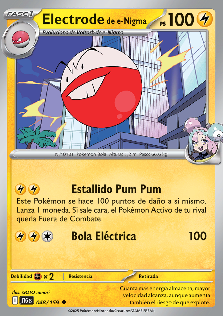 Estallido Pum Pum Este Pokémon se hace 100 puntos de daño a sí mismo. Lanza I moneda. Si sale cara, el Pokémon Activo de tu rival queda Fuera de Combate. |