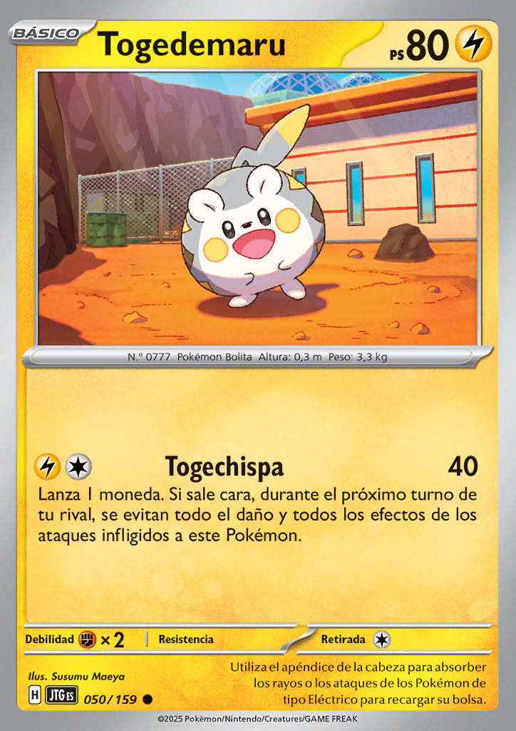 Togechispa Lanza 1 moneda. Si sale cara, durante el próximo turno de tu rival, se evitan todo el daño y todos los efectos de los ataques infligidos a este Pokémon. |