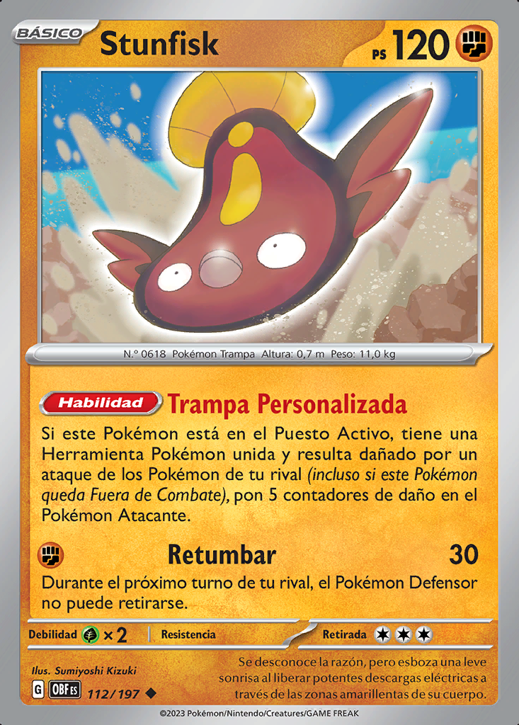 | Si este Pokémon está en el Puesto Activo, tiene una Herramienta Pokémon unida y resulta dañado por un ataque de los Pokémon de tu rival (incluso si este Pokémon queda Fuera de Combate), pon 5 contadores de daño en el Pokémon Atacante. | |