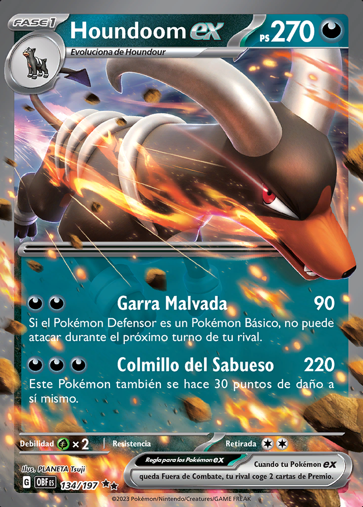 Cuando tu Pokémon ex queda Fuera de Combate, tu rival coge 2 cartas de Premio. |