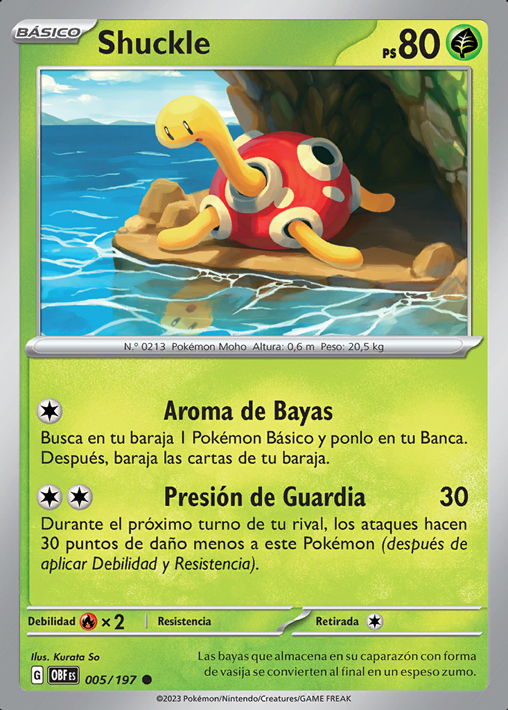 Aroma de Bayas Busca en tu baraja 1 Pokémon Básico y ponlo en tu Banca. Después, baraja las cartas de tu baraja. |