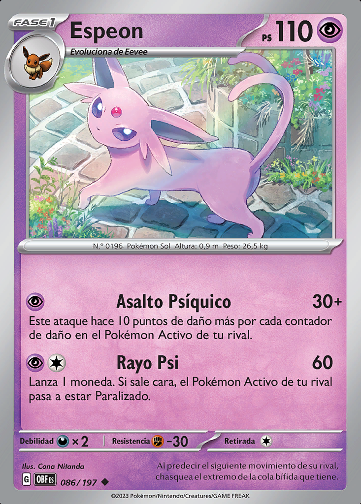 Asalto Psíquico Este ataque hace 10 puntos de daño más por cada contador de daño en el Pokémon Activo de tu rival. |