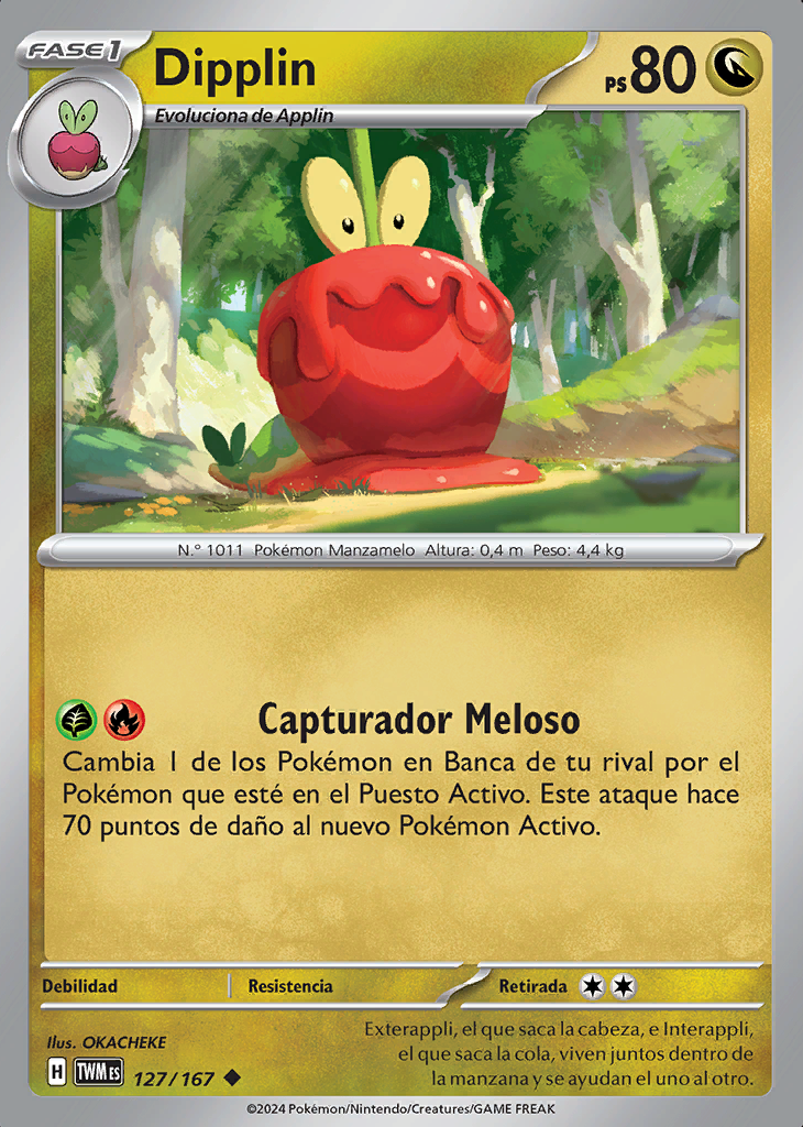 Capturador Meloso Cambia 1 de los Pokémon en Banca de tu rival por el Pokémon que esté en el Puesto Activo. Este ataque hace 70 puntos de daño al nuevo Pokémon Activo. |