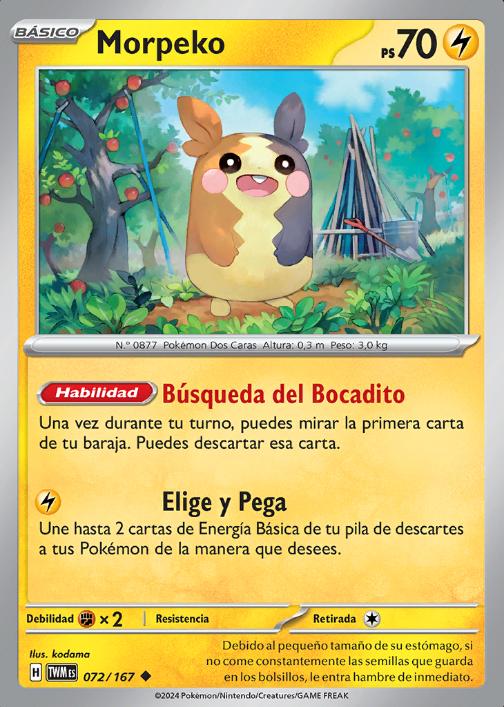 Elige y Pega Une hasta 2 cartas de Energía Básica de tu pila de descartes a tus Pokémon de la manera que desees. |