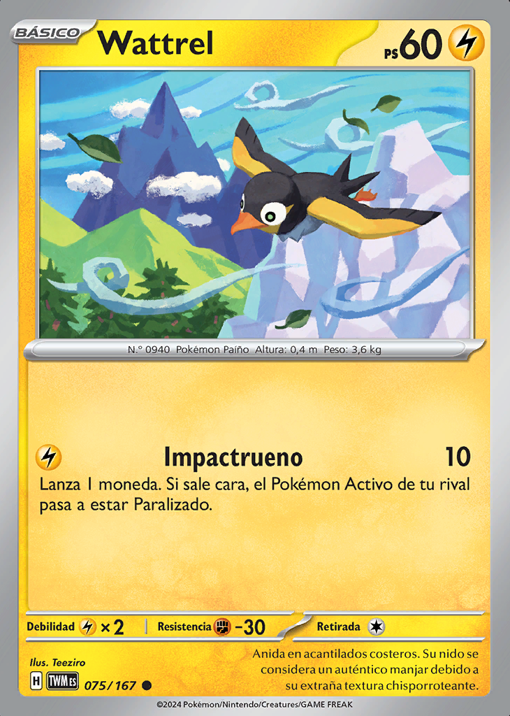 Impactrueno Lanza 1 moneda. Si sale cara, el Pokémon Activo de tu rival pasa a estar Paralizado. |