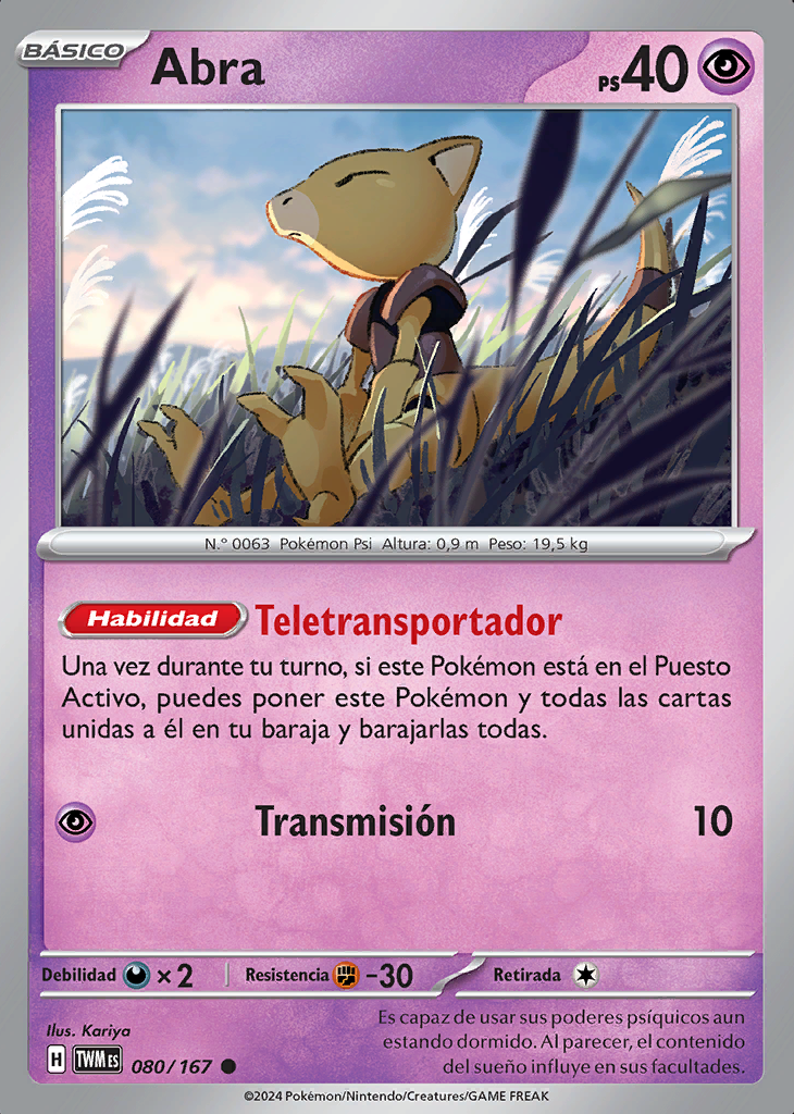 | Una vez durante tu turno, si este Pokémon está en el Puesto Activo, puedes poner este Pokémon y todas las cartas unidas a él en tu baraja y barajarlas todas. | |