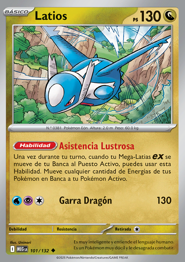 | Una vez durante tu turno, cuando tu Mega-Latias ex se mueve de tu Banca al Puesto Activo, puedes usar esta habilidad. Mueve cualquier cantidad de Energías de tus Pokémon en Banca a tu Pokémon Activo. | |