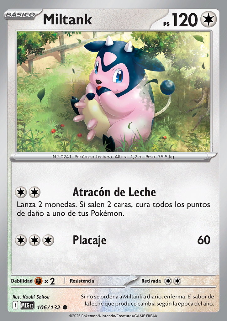 Atracón de Leche Lanza 2 monedas. Si salen 2 caras, cura todos los puntos de daño a uno de tus Pokémon. |