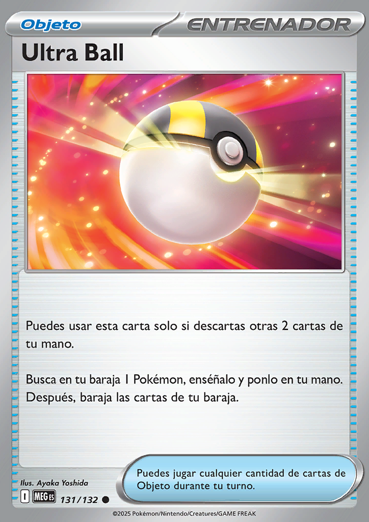 Puedes usar esta carta solo si descartas otras 2 cartas de tu mano. Busca en tu baraja 1 Pokémon, enséñalo y ponlo en tu mano. Después, baraja las cartas de tu baraja. |